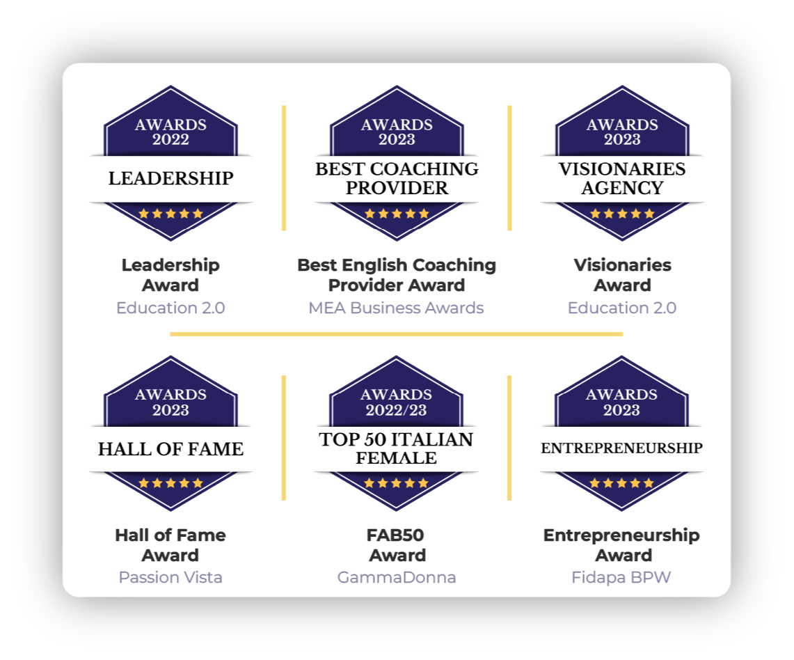 Ho ricevuto premi e riconoscimenti nel campo dell’apprendimento dell’inglese tra i più ambiti a livello nazionale ed internazionale come: